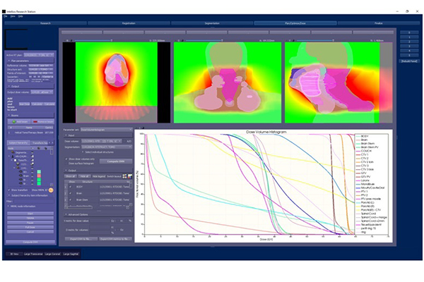 质子治疗计划系统将开发基于人工智能的器官勾画平台来服务于更准确的质子计划,达到:在较小的困难器官上自动分割效果达到并超过有长期经验医生的水平;能直接给最终用户使用,并对不同厂商的 CT 图像达到具有较高的鲁棒性能,无需人工预处理图像。提供专门适用于放疗物理模型的快速Monte-Carlo 质子引擎,通过模拟质子在病人体内的传播和相互作用,准确的计算物理剂量,二次辐射和生物学效应,并因为采用了GPU并行技术,计算速度相对于传统的MC工具,例如Geant4等,提高了10^5倍。开发人工智能自动勾画靶区的治疗计划系统,缩短治疗计划时间,解放物理师,降低医院运行成本。本项目分四个子课题进行研究:软件系统工程,人工智能器官自动勾画,基于GPU的Monte Carlo剂量计算和质子计划优化。